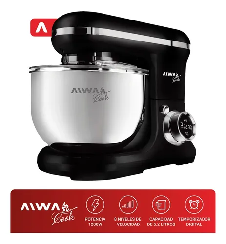 Batidora De Pie Planetaria Digital 3 En 1 Aiwa 5,2 Lts 1200w Color Negro Mate Frecuencia 50 Hz/60 Hz