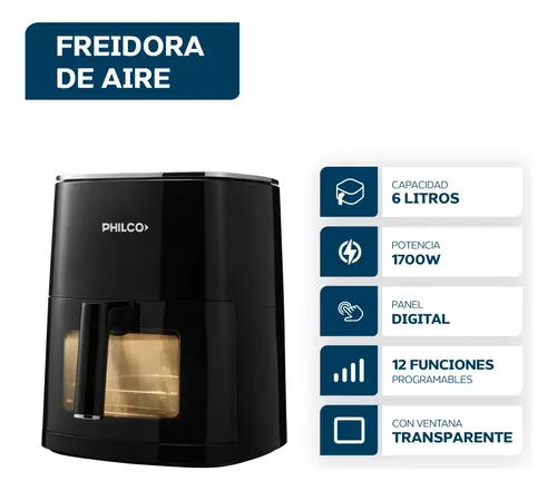 Freídora De Aire Philco 6 Litros Digital Con Visor 1700w Negro